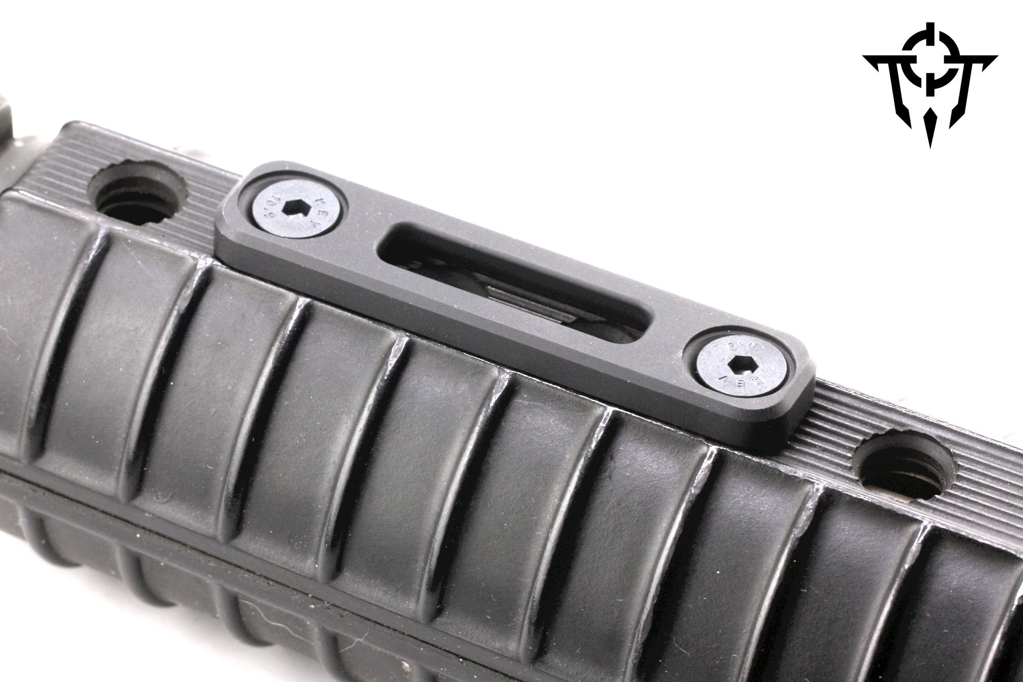 This is an MLOK rail that is designed to fit onto standard AR15 "clamshell" handguards. This uses a machined low-profile hardware that sits inside of the handguard and the MLOK rail screws directly into it.