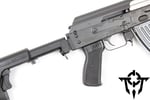 This is a two-piece stock adapter for Yugo AKs to mount Zenitco PT-1/3 stocks. This is a fixed mechanism and would not allow the stock to fold.